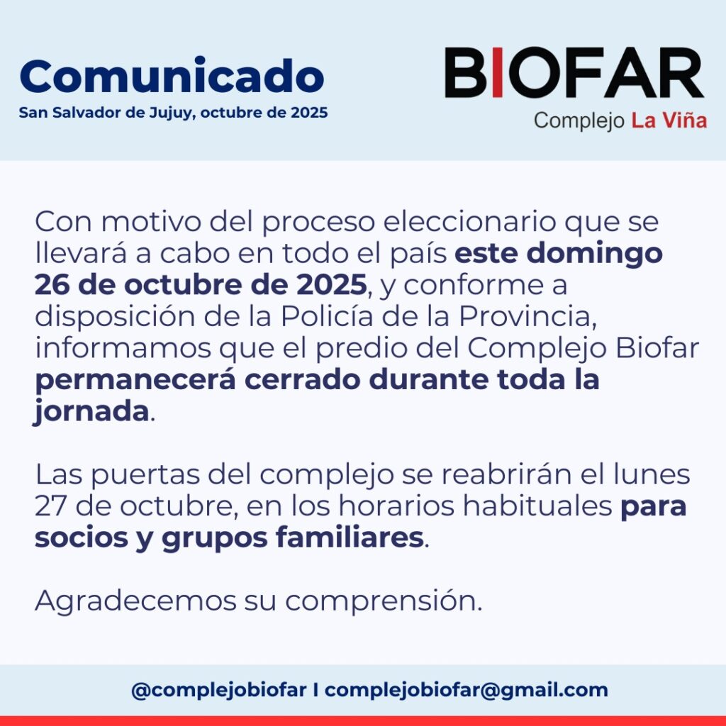 #Biofar #ComunicadoOficial #Elecciones2025 #Jujuy #ComunidadBiofar #ComplejoLaViƱa