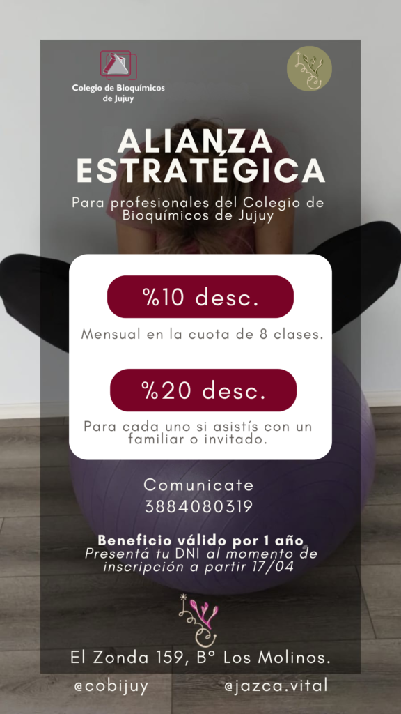 El Colegio de Bioquímicos de Jujuy, a través de su presidente, el Dr. José Raúl Najar, ha formalizado un nuevo convenio marco con JAZCA Vital, un espacio dedicado a la práctica de disciplinas que promueven la salud integral. A partir de ahora, nuestros matriculados cuentan con beneficios exclusivos en clases de: Yoga Aéreo. Yoga Vinyasa […]